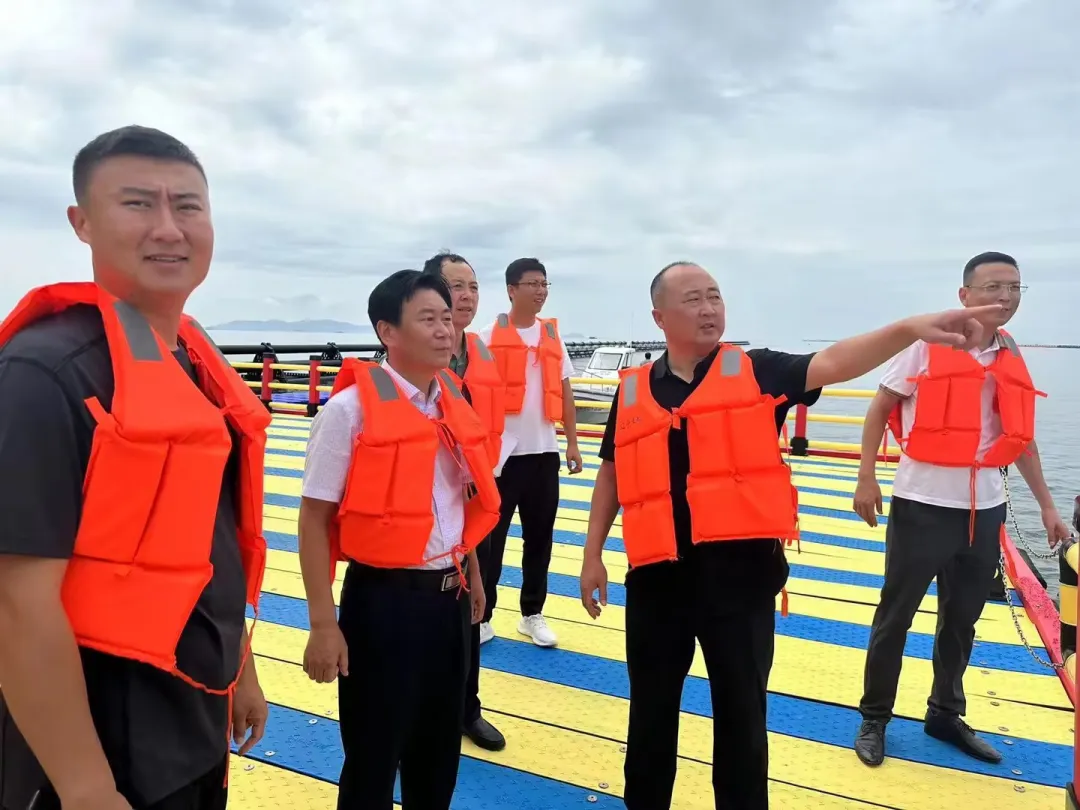 8月15日,大连市海洋发展局局长史明强等市领导一行在普兰店区副区长于永忠,区农业农村局局长杨平仁等区有关领导的陪同下,就大连市海洋渔业发展建设情况莅临鑫玉龙产业基地平岛实地考察。